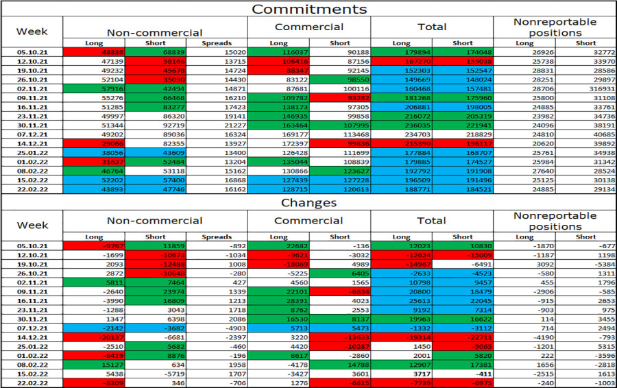 Podle hodinového grafu se pár GBP/USD v pátek obchodoval mezi úrovněmi 1,3357 a 1,3425. Dá se tedy říct, že pátek byl pro libru poměrně klidný. Nedokázala se sice zotavit ze čtvrtečních ztrát, ale nic dalšího neztratila. Na začátku pondělního obchodování se pár znovu propadl, tentokrát o 90 bodů, ale rychle se vzpamatoval a nyní se obchoduje víceméně stabilně. Přestože ve čtvrtek a v pátek došlo ke dvěma významným odrazům od úrovní, mám za to, že obchodníci jsou v tuto chvíli neklidní. Úrovně tedy mohou být ignorovány a pár může provádět prudké obraty a silné pohyby. Propad ještě neskončil. Čím víc se bude konflikt na Ukrajině rozvíjet, tím spíš uvidíme páry euro/dolar a libra/dolar mnohem níž. Všechny trhy nyní analyzují a zvažují jen informace související s vojenským konfliktem na Ukrajině. Veškeré ostatní informační pozadí proto nemá na sentiment obchodníků prakticky žádný vliv. A v každém případě už je prakticky pryč.