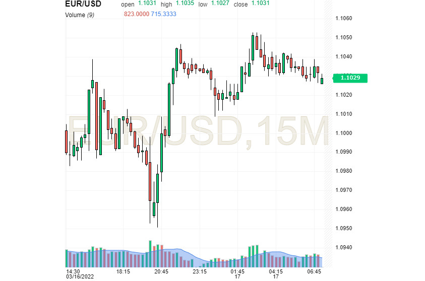 Na konci týdne si dolar dokázal držet vedoucí pozici, a to navzdory geopolitickému napětí a vícesměrným makrostatistikám ze Spojených států. Ve čtvrtek 17. března ráno zůstával vůči euru stabilní. Pár EUR/USD se přitom obchodoval v pásmu 1,1028–1,1029, občas prudce klesl a znovu stoupl.