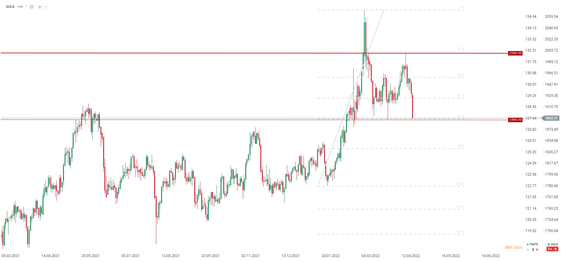 Klíčová slova: Support | Zlato | USD | Obchodování | Cena zlata | Cena | Zajištění | Zpřísňování měnové politiky | Měnové politiky | xStation5 | Pokles | Situace | Zajištění proti inflaci |