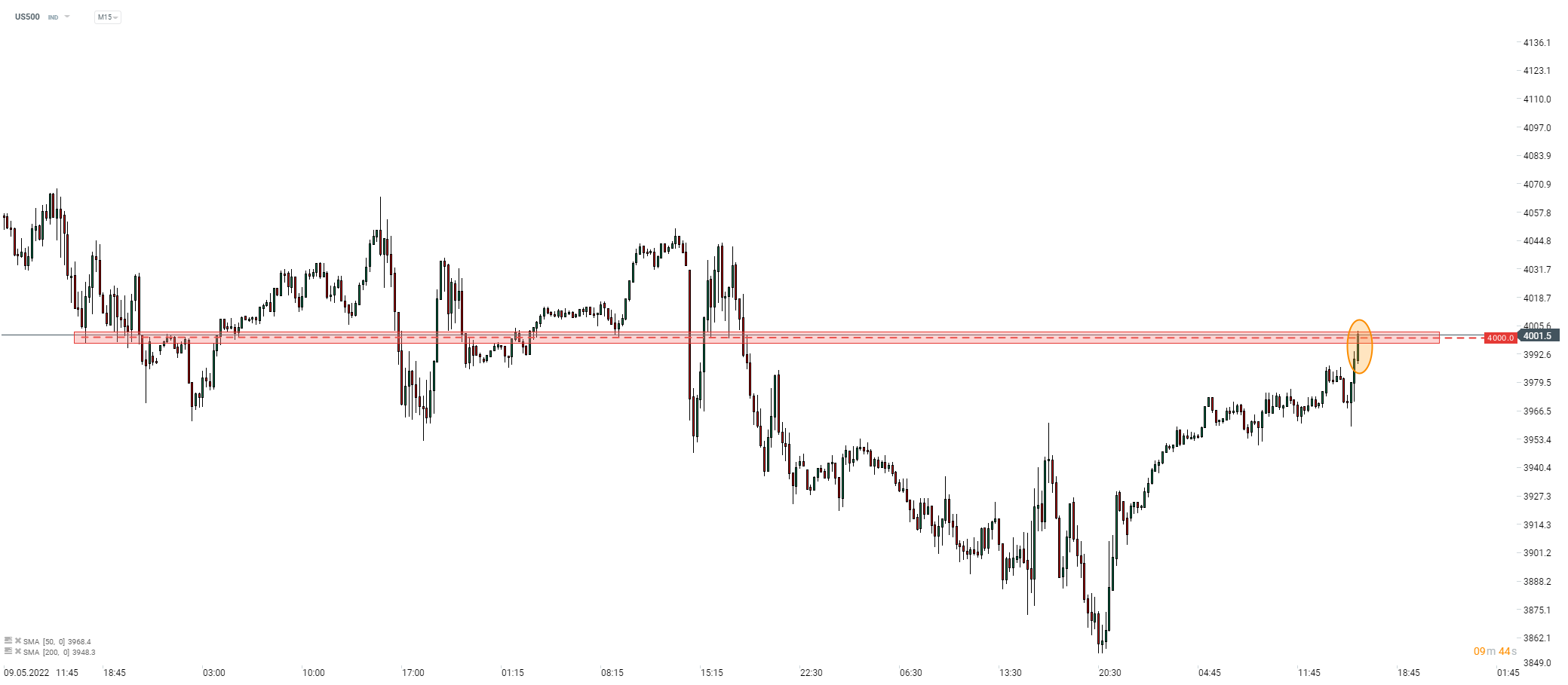 S&P 500 vyskočil nad hladinu 4 000 bodov. Zdá sa, že hlavnú úlohu zohrávajú inflačné očakávania. Zdroj: xStation5