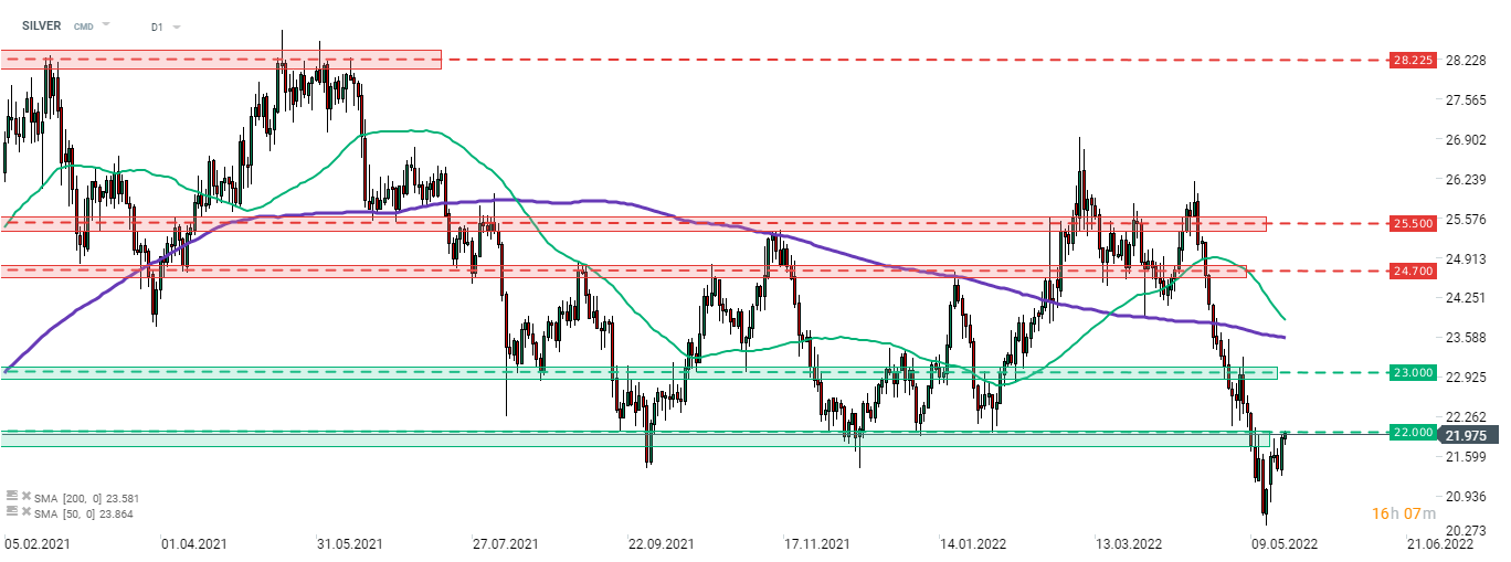 Drahé kovy se obchodují výše při oslabování amerického dolaru. Stříbro se pokouší posunout zpět nad 22,00 USD, která sloužila jako spodní hranice obchodního rozpětí od září 2020. Zdroj: xStation5