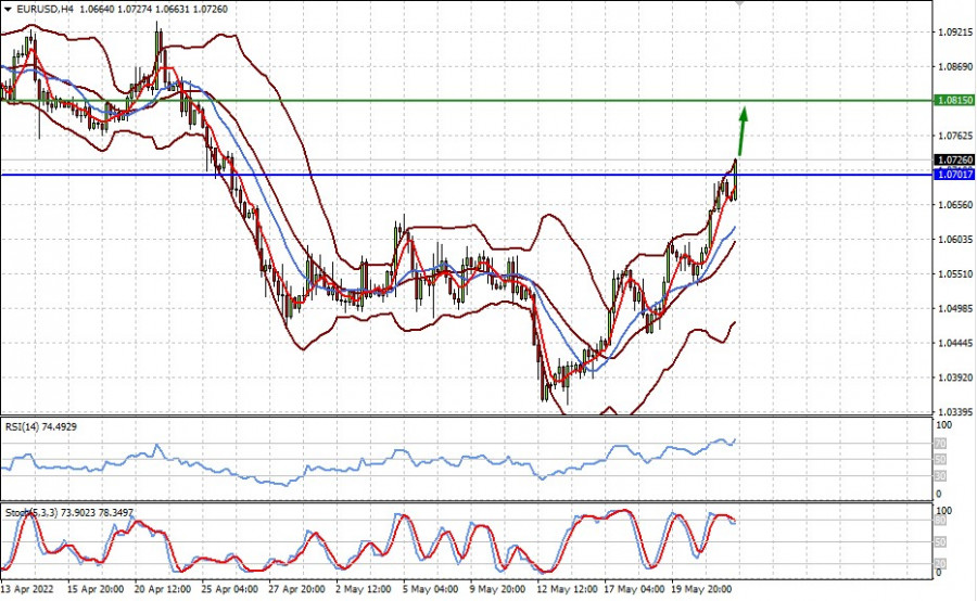 Růst a konsolidace nad úrovní 1,0700 může vést k lokálnímu růstu na úroveň 1,0815.