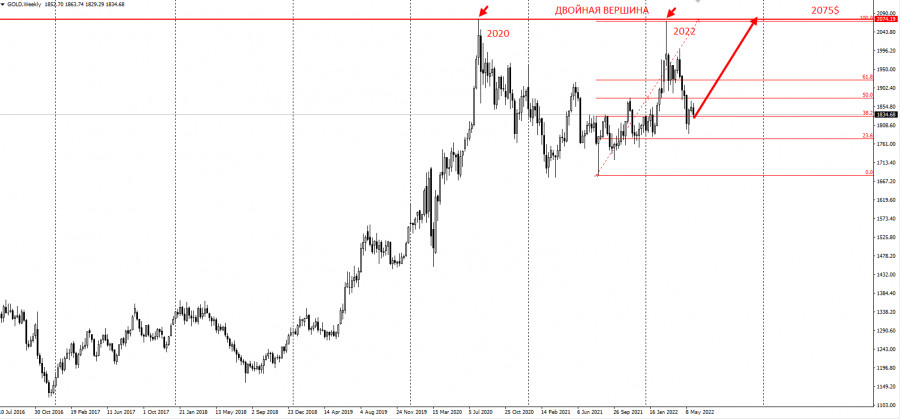Toto je velký plán na obchodování zlata, založený na aktualizaci dvojitého vrcholu z let 2020–2022.