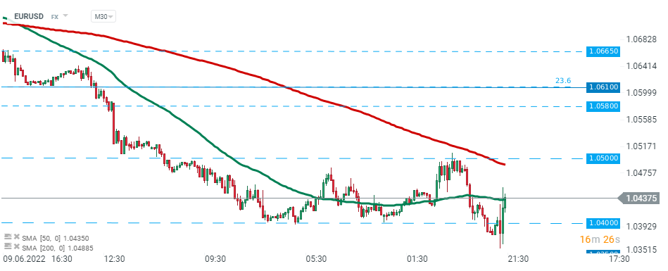 Reakce trhu je mírná. EURUSD se mírně stáhl zpět, aby mohl zase růst. Zdroj: xStation5