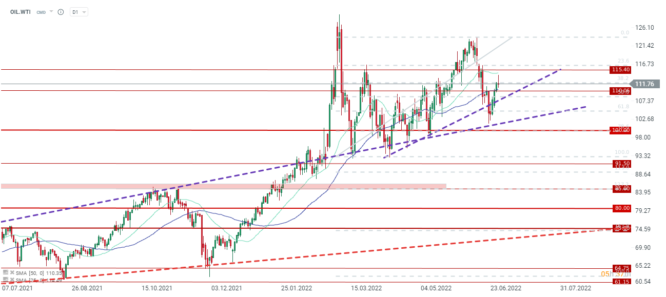 Cena ropy WTI (OIL.WTI) se opětovně stahuje. Je nutno říci, že se jedná pouze o reakci na deklarace, které se nemusí skutečně promítnout do opatření, která mohou změnit situaci na trhu. Zdroj:xStation5