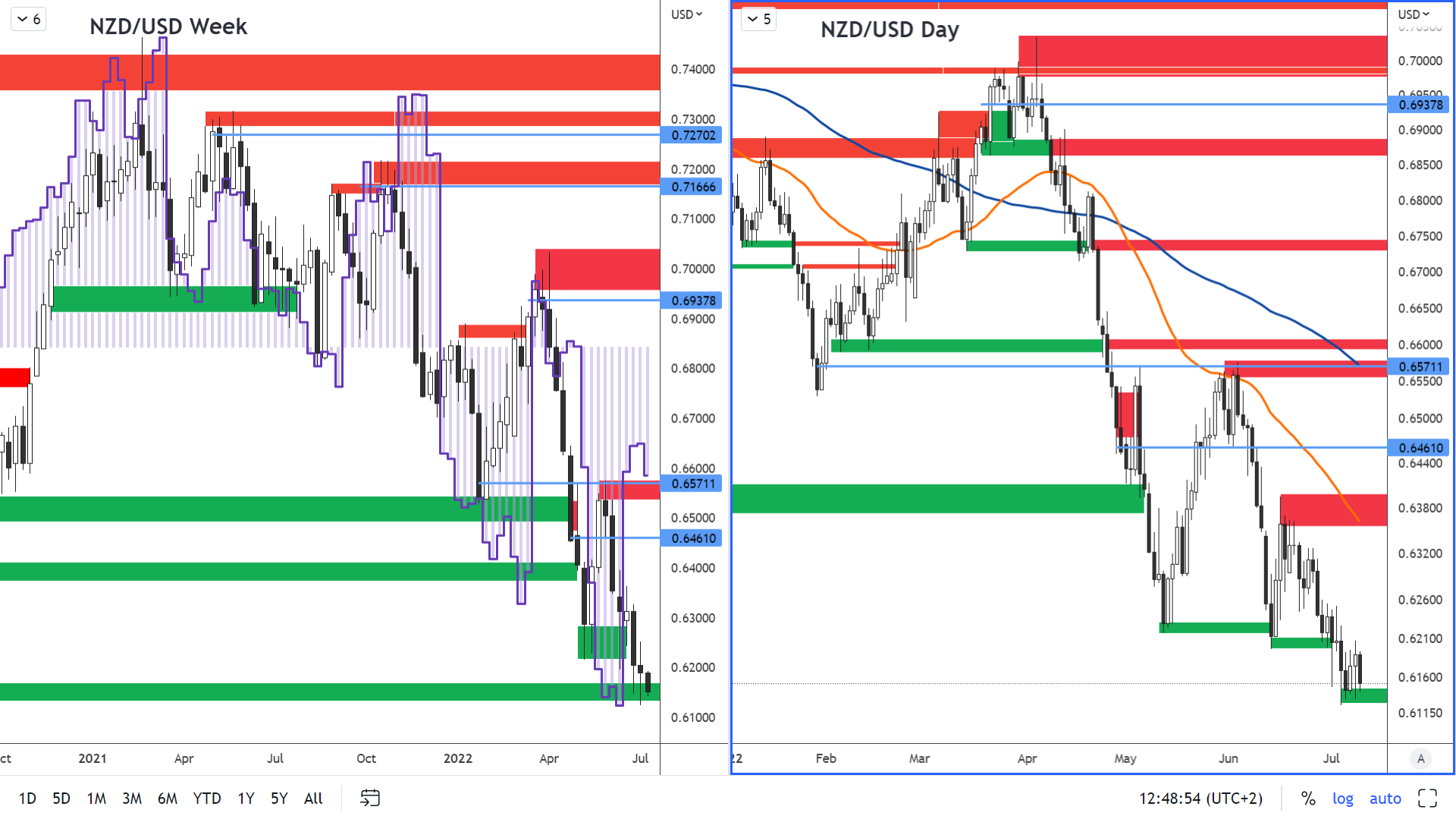 NZD/USD se pohybuje velice podobně jako pár AUD/USD v klesajícím trendu a pár se přiblížil k oblasti významného supportu.