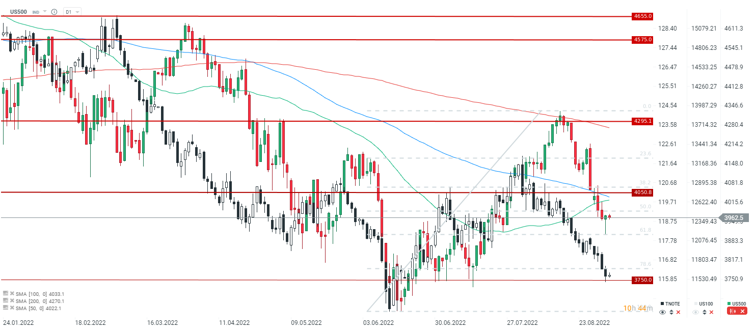 Potenciální formace ranní hvězdy se může tvořit na intervalu D1 a opravdu slabá zpráva NFP by mohla poskytnout více paliva pro býky. Na druhou stranu, silná zásobovací zóna se nachází kolem 4025-4070. Pokud přehled překoná očekávání trhu, je možné otestovat retracement 61,8. Zdroj: xStation5