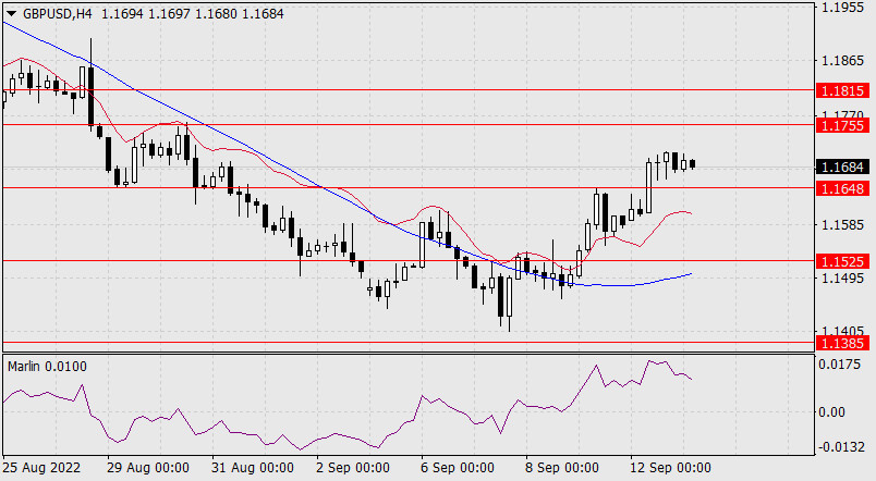 Stejně tak se může signální linie oscilátoru Marlin obrátit dolů po dosažení hranice oblasti růstu. V tomto případě očekáváme pokles pod hladinu 1,1525. Toto je hlavní scénář. Výstup ceny nad rezistencí na úrovni 1,1815 otevře cíl na hladině 1,2005.