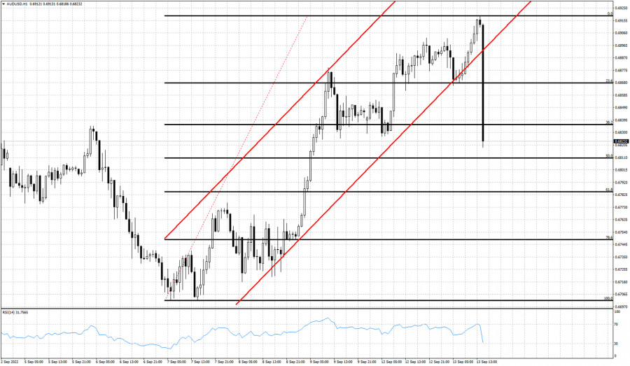 Pár AUD/USD se obchoduje u hladiny 0,6820, zatímco dříve dnešního dne byla cena na hladinou 0,6920 a na nedávných maximech. Od 7. září stoupá od hladiny 0,67. Tento vzestupný pohyb je u konce. Dolar následkem vyšších než očekávaných hodnot CPI, oznámených o několik minut dříve, vůči svému páru posiluje. Tento vzestupný pohyb skončil, protože vidíme, jak cena proráží z býčího kanálu ven. Support se nachází na hladině 0,6785. Býci nechtějí vidět denní zavírací cenu pod touto úrovní. Nedávná maxima jsou velmi důležitou rezistencí a býci ji potřebují znovu dobýt, aby se vyvarovali rizika poklesu pod hladinu 0,67. Dokud cena bude pod hladinou 0,6920, dál věříme v medvědí trend.