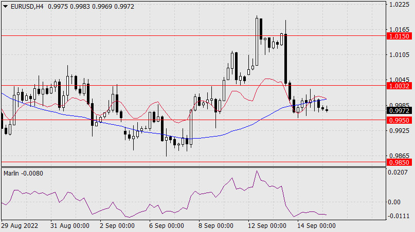 Signální linie oscilátoru Marlin se otočila, aniž by se pokusila otestovat hranici oblasti růstu. To je dobré znamení pro další pokles, který bude potvrzen, jakmile cena prolomí pod support na hladině 0,9950. Nejbližší cíl se nachází na úrovni 0,9850, další na úrovni 0,9752.