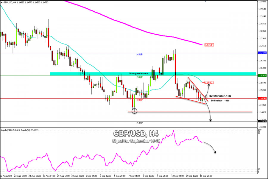 Obchodní signál pro pár GBP/USD na 16.–19. září 2022: nakupujte při průrazu úrovně 1,1480 (Murray 2/8 – symetrický trojúhelník)
