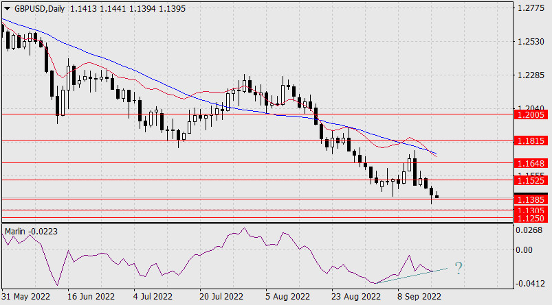 Zatím se kotace blíží k oblasti oscilátoru Marlin, což může vyústit v růst k úrovni 1,1648 nebo v dlouhou korekci. Pokud nedojde ke konvergenci, pár se dostane pod úroveň 1,1305 a zamíří k úrovni 1,1250, odkud bude stoupat k úrovni 1,083.