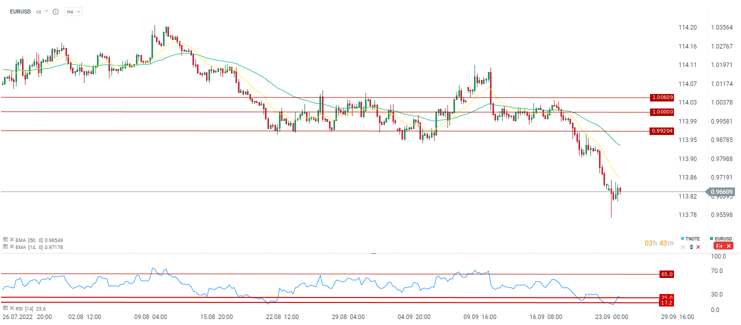 EURUSD se snaží odrazit po ranním výprodeji částečně způsobeném propadem libry. Za pozornost stojí RSI, které se odráží od úrovně 17 bodů. Předchozí odraz z této úrovně zahájil vzestupný pohyb o 180 pipů. Pokud se má historie opakovat, pár by mohl skočit na úroveň 0,9730. Zdroj: xStation5