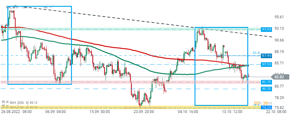 Cena ropy WTI (OIL.WTI) po zveřejnění dnešní zprávy EIA mírně klesla. Zdroj:xStation5