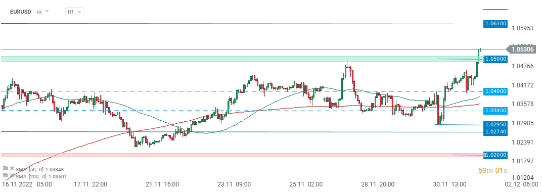 EURUSD zaznamenal relativně malou reakci na dnešní zveřejnění dat. Nejpopulárnější měnový pár se nadále obchoduje nad úrovní 1,0500. Zdroj: xStation5