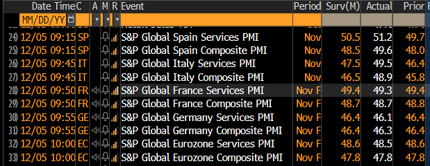Vidíme, že situace v eurozóně jako celku klesla v souladu s předchozími údaji, zatímco ve Španělsku nebo Itálii se zlepšila. Nicméně vidíme, že ve většině případů přesto panuje negativní nálada. Agentura S&P Global uvádí, že s možným vrcholem inflace může negativní dopad na poptávku zeslábnout. S&P Global se navíc domnívá, že dopad zimy na poptávku by měl být spíše omezený, i když to bude do značné míry záviset na počasí. Zdroj: S&P&P: Bloomberg
