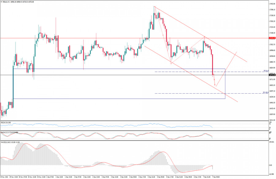 Pár BTC/USD se obchoduje sestupně směrem k ceně 16 800 USD. Každopádně vidím testování silné oblasti gapu, kde se mohou připojit kupující.