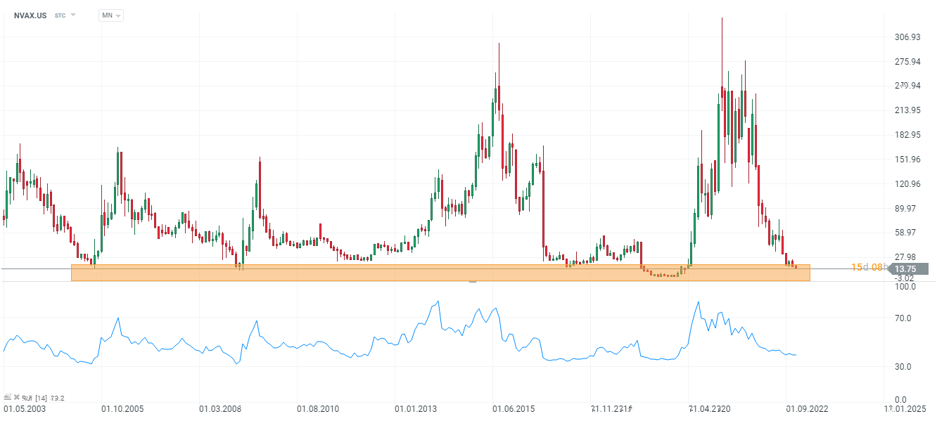 Společnost Novavax (NVAX.US), výrobce léku Nuvaxovid proti viru Covid-19, se v posledních letech těšila obrovským příjmům, které však s odezněním pandemie skončily a nahradily je finanční problémy. Společnost varovala, že možná nebude schopna přežít, což včera vyvolalo panickou reakci investorů. -