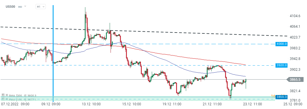 Index US500 se dnes pokouší odrazit po výrazném poklesu v první polovině týdne. Pozoruhodné je, že jsme také svědky silného růstu cen dluhopisů, což by teoreticky mělo podpořit růstový pohyb Wall Street. -