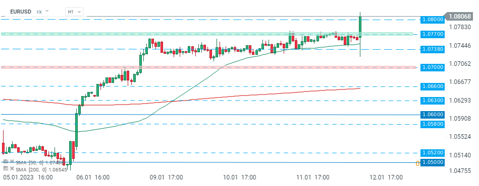 Pár EURUSD se odrazil od lokálního supportu na úrovni 1,0738 a pokračoval v růstu. Nejoblíbenější měnový pár se aktuálně obchoduje nad hlavní rezistencí na úrovni 1,0800. Zdrojem je informace o vývoji kurzu na úrovni 1,00 EURUSD: Zdroj: Station5