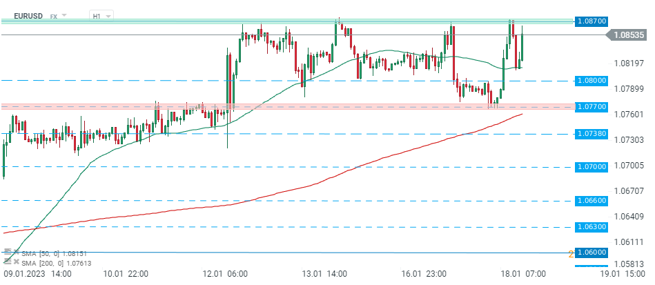 Pár EURUSD se pohybuje směrem k rezistenci na 1,0870. Zdroj: xStation5