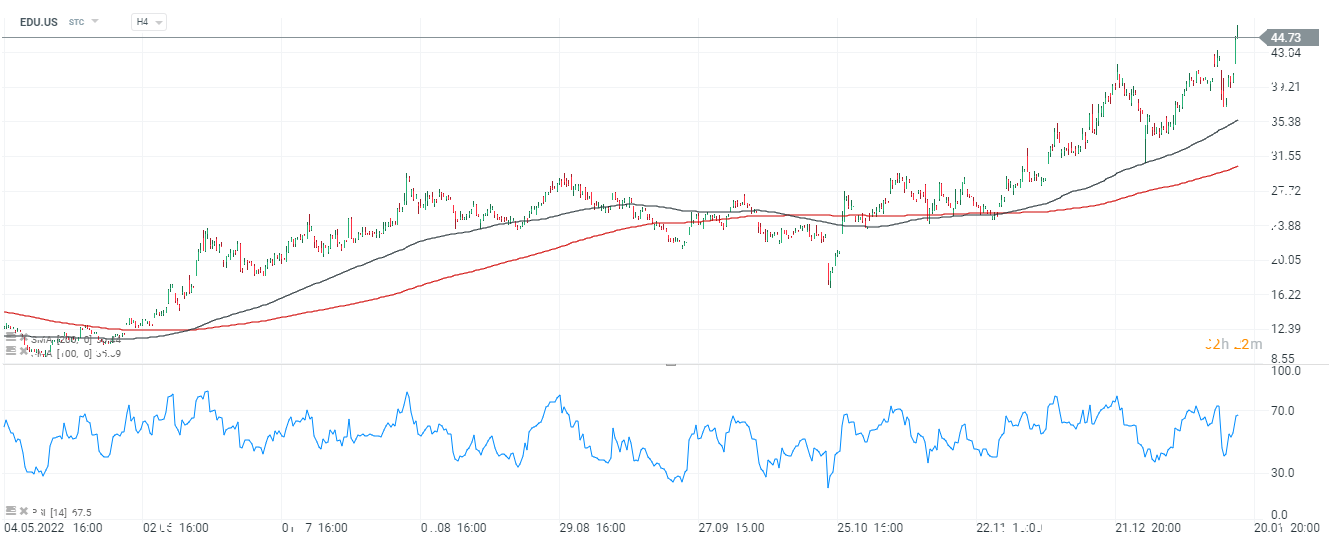 New Oriental Stock (EDU.US), H4 interval. Zdroj: xStation5