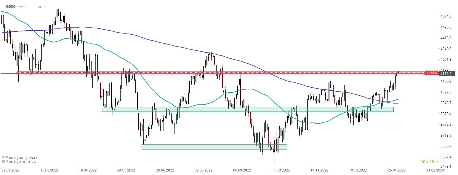Hlavné akciové index ako US500 a US100 zaznamenali od začiatku roka prudký nárast hodnoty a atakujú najvyššie úrovne tohto roka. Investori dúfajú, že FED na zasadnutí v stredu (19:00) poskytne pozitívne správy, ktoré podporia rast na akciovách trhoch. V Európe sú FRA40 a DE30 tiež blízko najvyšší úrovní tohto roka, pričom DE30 je pred dôležitou úrovňou rezistencie v oblasti 11775 bodov. Traderi by mohli nakúpiť DE30 ak očakávajú, že trh bude rásť, prípadne predať, ak očakávajú pokles na trhoch. -