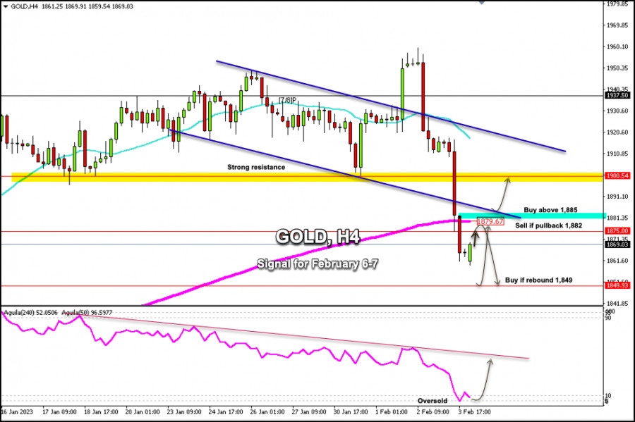 Obchodní signál pro zlato (XAU/USD) na 6.–7. února 2023: prodávejte v případě poklesu na 1 882 USD (linie 200 EMA – přeprodaná)