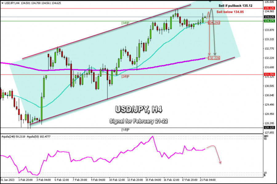 Obchodní signál pro pár USD/JPY na 20.–21. února 2023: prodávejte pod úrovní 134,85 (Murray 3/8 – silná rezistence)