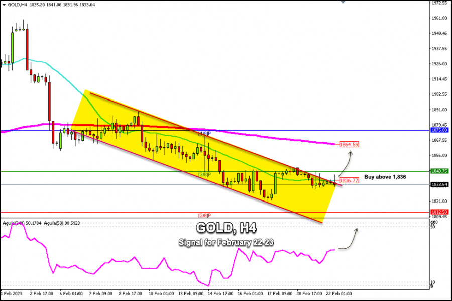 Obchodní signál pro ZLATO (XAU/USD) na 22.–23. února 2023: nakupujte nad úrovní 1 836 USD (21 SMA – medvědí kanál)