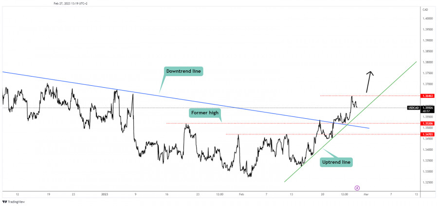 Klíčová slova: USD/CAD | Uptrend | USD | CAD | Obchodování | Trendová linie | Rostoucí trendová linie | Příležitost k nákupu | Další růst | Růst | Trendové linie | Pár USD/CAD |