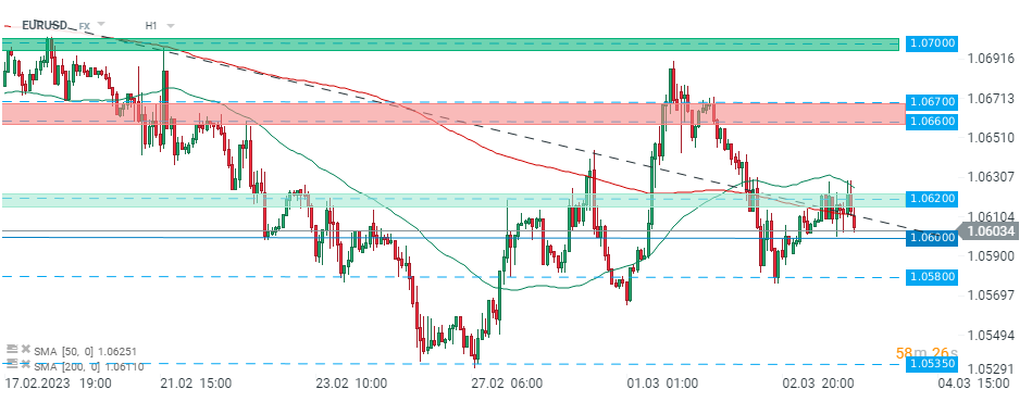 EURUSD po dnešních datech ISM mírně klesl. Pár se opět posouvá směrem k úrovni 1,0600. Zdroj: xStation5