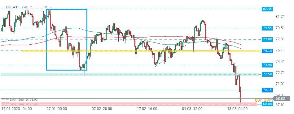 Cena ropy WTI (OIL.WTI) se po zveřejnění dnešní zprávy EIA odrazila od podpory na úrovni 68,00 USD Zdroj:xStation5