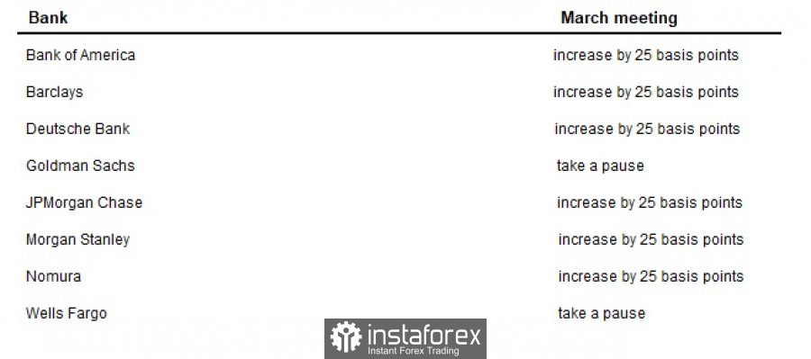 V posledních dvou týdnech totiž prognózy v souvislosti s krachem tří regionálních amerických bank a převzetím švýcarské banky Credit Suisse klesly. Dokud budou problémy amerického bankovního sektoru pod kontrolou, budou úředníci podle očekávání pokračovat v kampani za zvýšení úrokových sazeb a omezení růstu cen, případně tuto kampaň ještě zintenzivní.