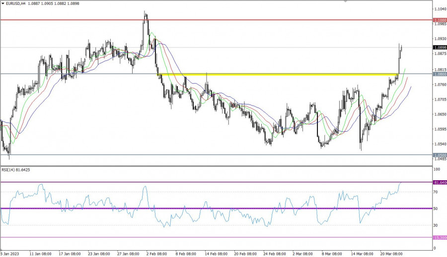 Pár euro/dolar prolomil uprostřed inertního pohybu hladinu rezistence 1,0800. V důsledku toho vzrostl objem dlouhých pozic, což ukazuje na oživení eura po únorovém propadu.