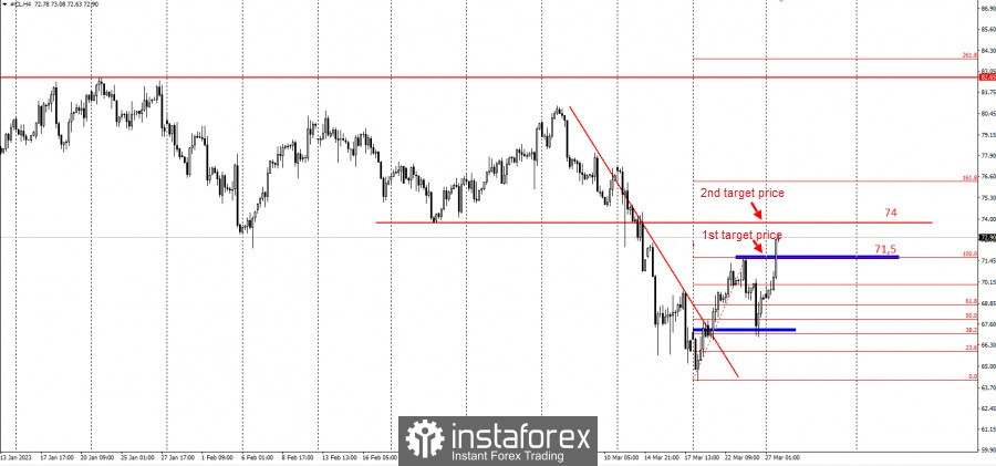 Obrovská gratulace těm, kdo se touto strategií řídili! Pohyb ceny činil celých 6,5 USD. Obchodníci mohou uzavřít část long pozic se ziskem. Obchodní plán byl založen na metodách "Price action" a "Stop hunting". -