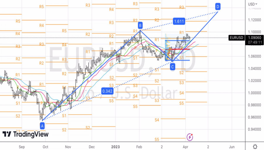 Z technického hlediska dochází na denním grafu k mírnému pullbacku v důsledku snahy medvědů realizovat vnitřní bar. Pokud by medvědi uspěli, návrat k horní hranici poblíž 1,097 by zvýšil riziko oživení uptrendu a stal by se základem pro otevírání dlouhých pozic s cílem dosáhnout 161,8 % formace AB=CD. Nachází se poblíž 1,1335. Pro dlouhé pozice bude vhodný odraz od 1,0855 USD a 1,0825 USD.