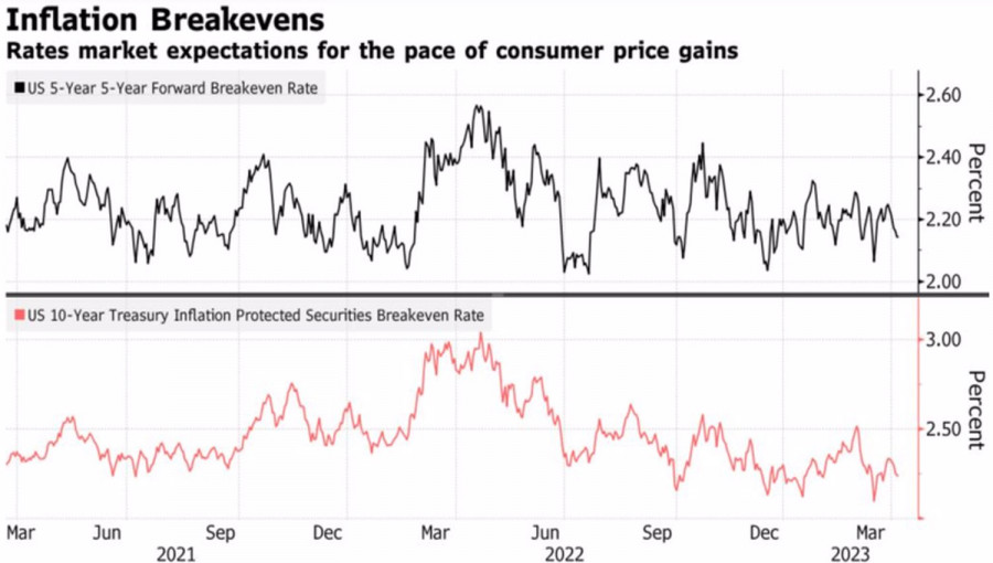 Investoři nyní zaměřují svou pozornost na inflaci a klíčovou událostí tohoto týdne budou březnové údaje, které budou zveřejněny 14. dubna. Agentura Bloomberg odhaduje, že spotřebitelské ceny zpomalí z 6 % na 5,2 %, zatímco jádrový ukazatel zrychlí z 5,5 % na 5,6 %. Takto smíšená dynamika ponechává otevřené dveře pro květnové zvýšení sazeb, ačkoli diskuse v rámci FOMC budou velmi bouřlivé.