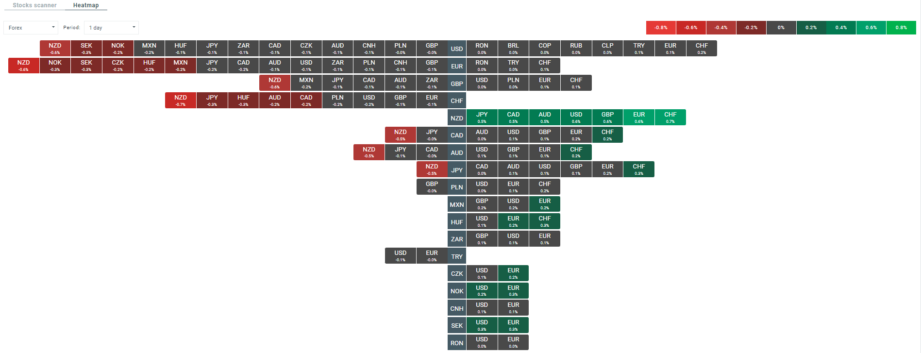 Mapa volatility na devízovom trhu v súčasnosti. Zdroj: xStation 5