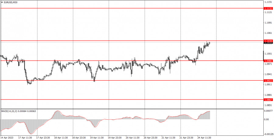 Jak obchodovat pár EUR/USD 25. dubna. Jednoduché obchodní rady a analýza pro začátečníky.