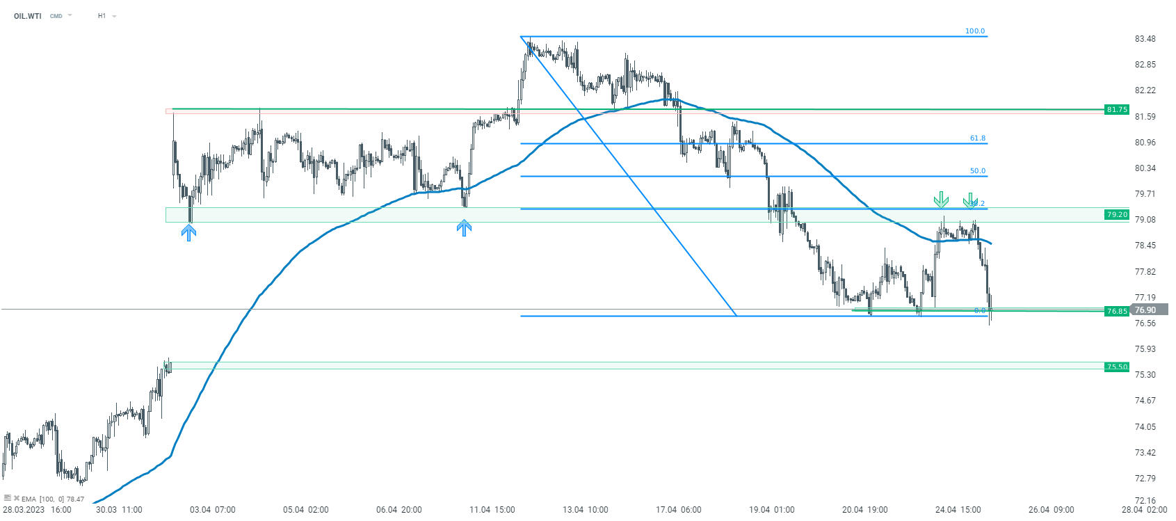 OIL.WTI, H1 interval. Zdroj: xStation5