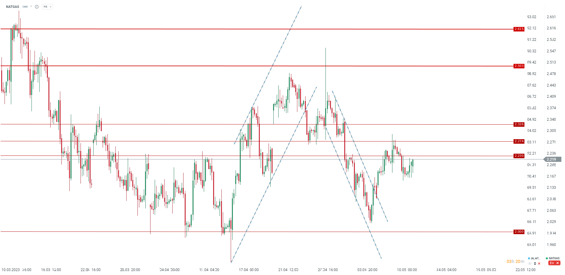 Plyn se pokouší o test úrovně 2,23 po zveřejnění zásob, které klesly v souladu s pětiletým průměrem. Zdroj: xStation5