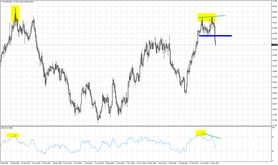 Klíčová slova: Technická analýza | Divergence | Analýza | RSI | Retracement | Support | USD | Medvědí divergence | Cena | Cena stříbra | Pokles ceny | Analýza stříbra | Obrat trendu | Klíčový support | Pokles | Medvědi | Historie se opakuje | Historie | Šance | Ceny | Vrcholy | Fibonacciho retracement | Technická analýza stříbra | Nižší minima | Nižší maxima |
