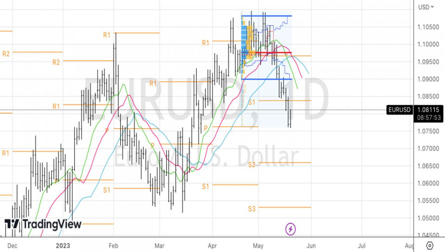 Z technického hlediska se páru EUR/USD podařilo najít dno na denním grafu díky pivot pointu 1,076. Tím bylo dosaženo cílové úrovně pro krátké pozice z 1,101. K obnovení vzestupného trendu potřebuje trh silné signály, včetně testu klouzavých průměrů. Dokud nebudou žádné takové signály, pár se bude s největší pravděpodobností dále stahovat. Nejlepší způsob, jak dosáhnout zisku, je tedy prodat euro při odrazech z úrovní rezistence 1,0835 a 1,087.
