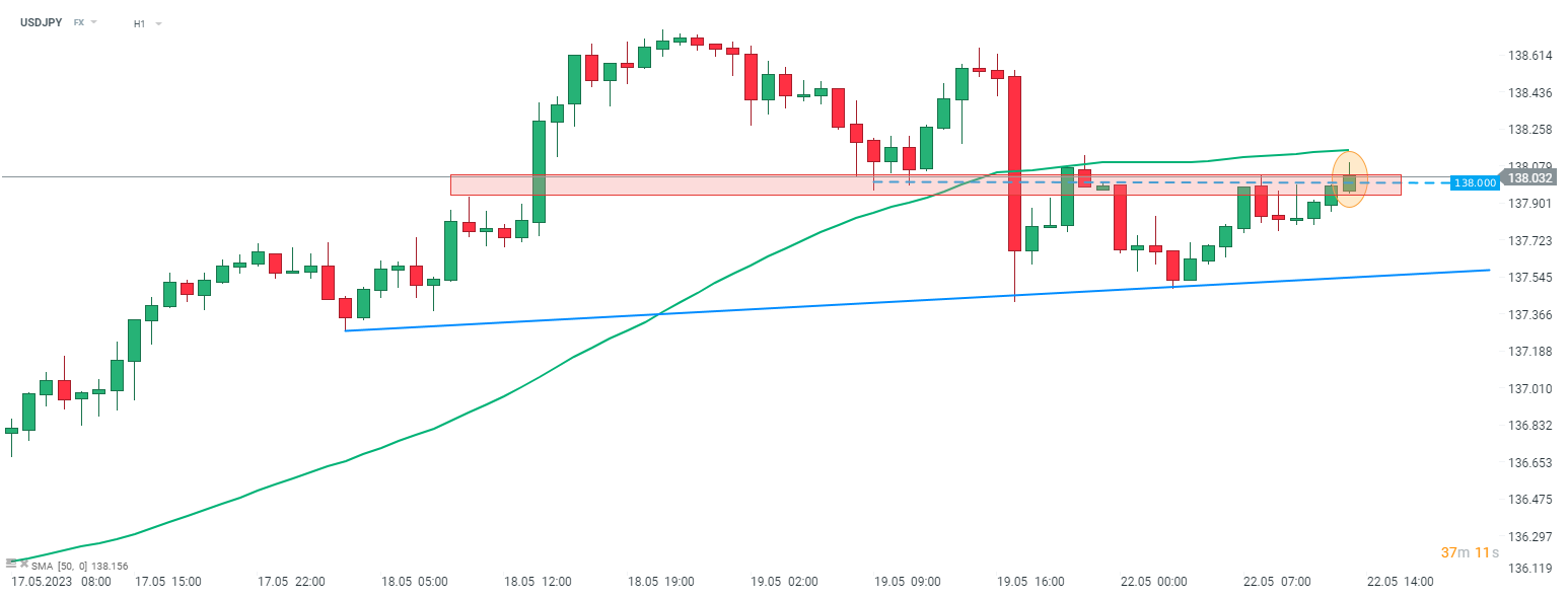 USDJPY po Kashkariho komentáři vyskočil na nové denní maximum, ale od té doby část pohybu smazal. Zdroj: xStation5