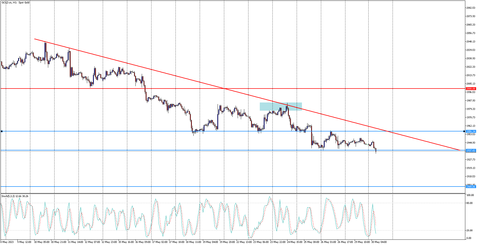 Zlato minulý týden propadlo na nejnižší úroveň za dva měsíce. Dnes tato úroveň byla pokořena v brzkých hodinách a cena se nachází na ceně 1 935 USD. V pondělí však cena zlata vykazovala známky oživení. Pokud bude brzy učiněno oficiální oznámení týkající se dohody o zvýšení limitu veřejného dluhu USA, může hodnota zlata rychle vzrůst kvůli očekávanému poklesu USD. Navzdory současnému tržnímu stresu a averzi k riziku se zlatu nepodařilo fungovat jako ochranné aktivum, protože pozornost zůstává na USA, jejich rozpočtu a měně.