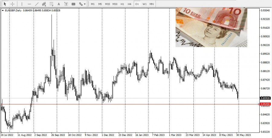 Pár EUR/GBP zůstává v medvědím trendu kvůli neuspokojivým indikátorům spotřebitelské inflace z Francie a Německa. Ten první údajně v květnu meziměsíčně klesl o 0,1 %, zatímco ten druhý meziročně klesl ze 7,2 % na 6,1 %. To by mohlo přesvědčit Evropskou centrální banku, aby snížila tempo zpřísňování, což by oslabilo euro.