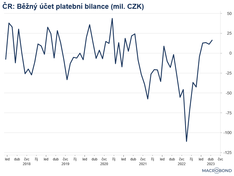 V dubnu vzrostlo saldo běžného účtu platební bilance na 16,71 mil. CZK oproti 11,27 mil. v březnu. Trhy očekávaly zvýšení na 17,5 mil. CZK.