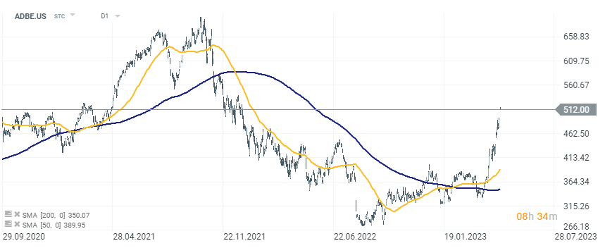 ADBE.US, D1 interval, Zdroj: xStation 5