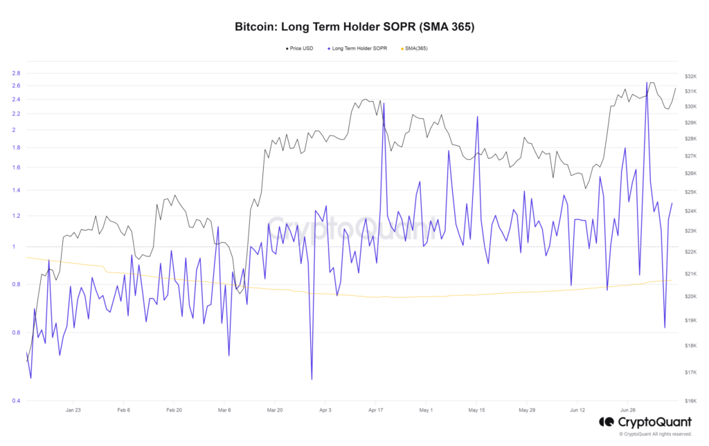 SOPR dlouhodobých držitelů bitcoinu, měřítko ziskových marží zkušených investorů královské mince, odhalil, že většina těchto držitelů prodává BTC se ziskem. Podle společnosti CryptoQuant činila hodnota SOPR 1,29 %, což naznačuje, že by BTC mohl být v počáteční fázi býčího cyklu.